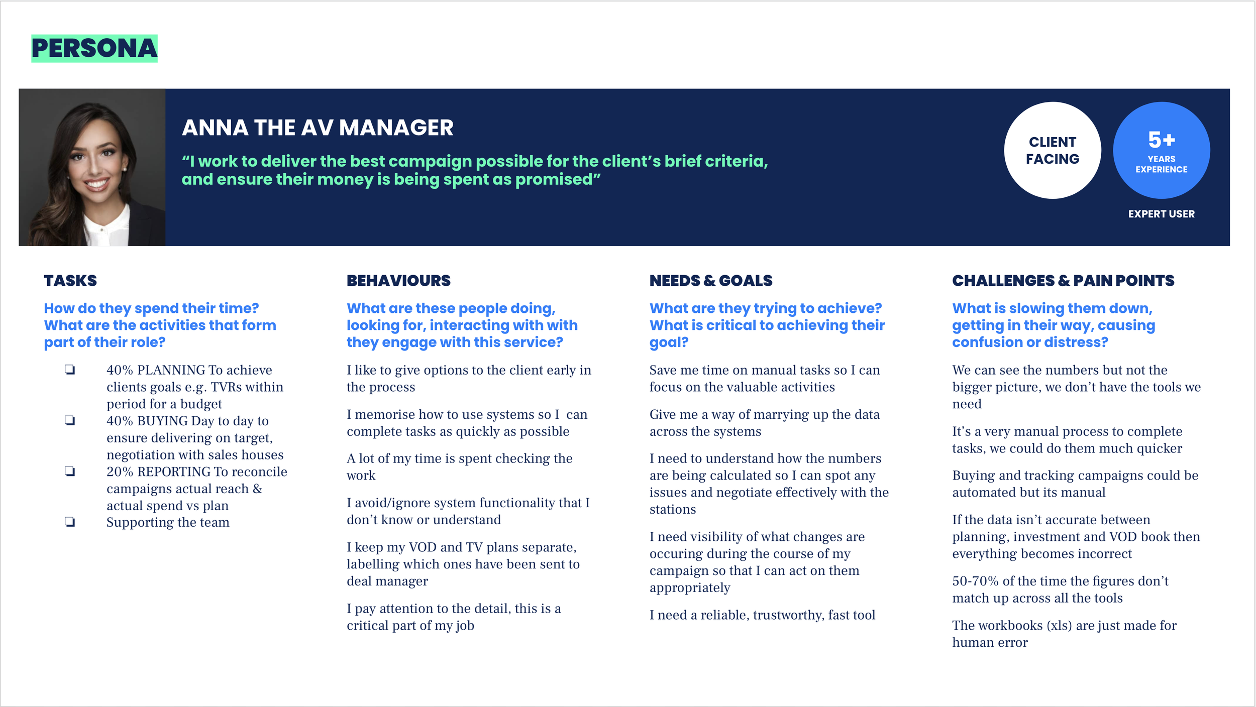 We worked with the transformation team, business stakeholders and the product team to plan the business migration from Excel to their proprietary media planning platform